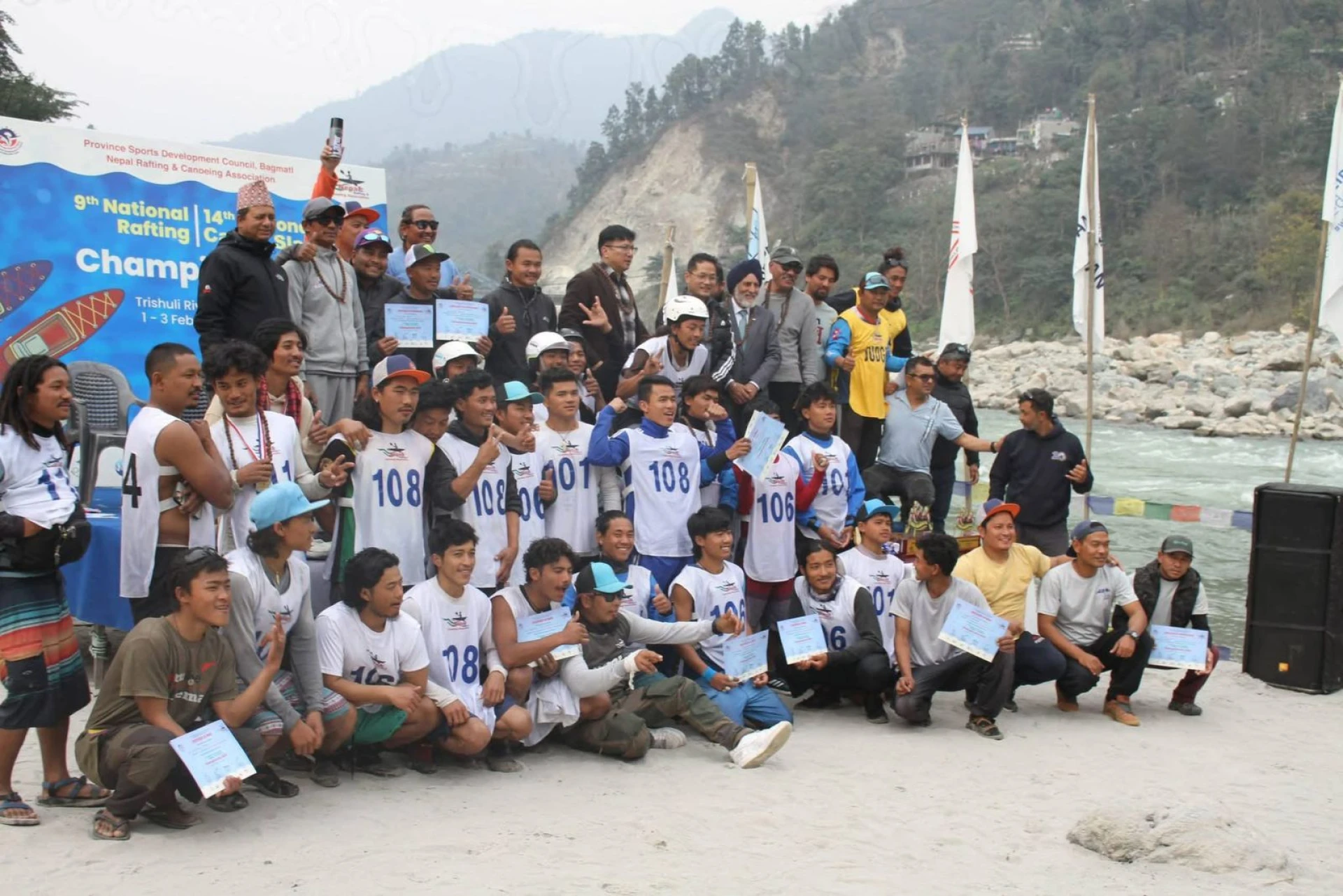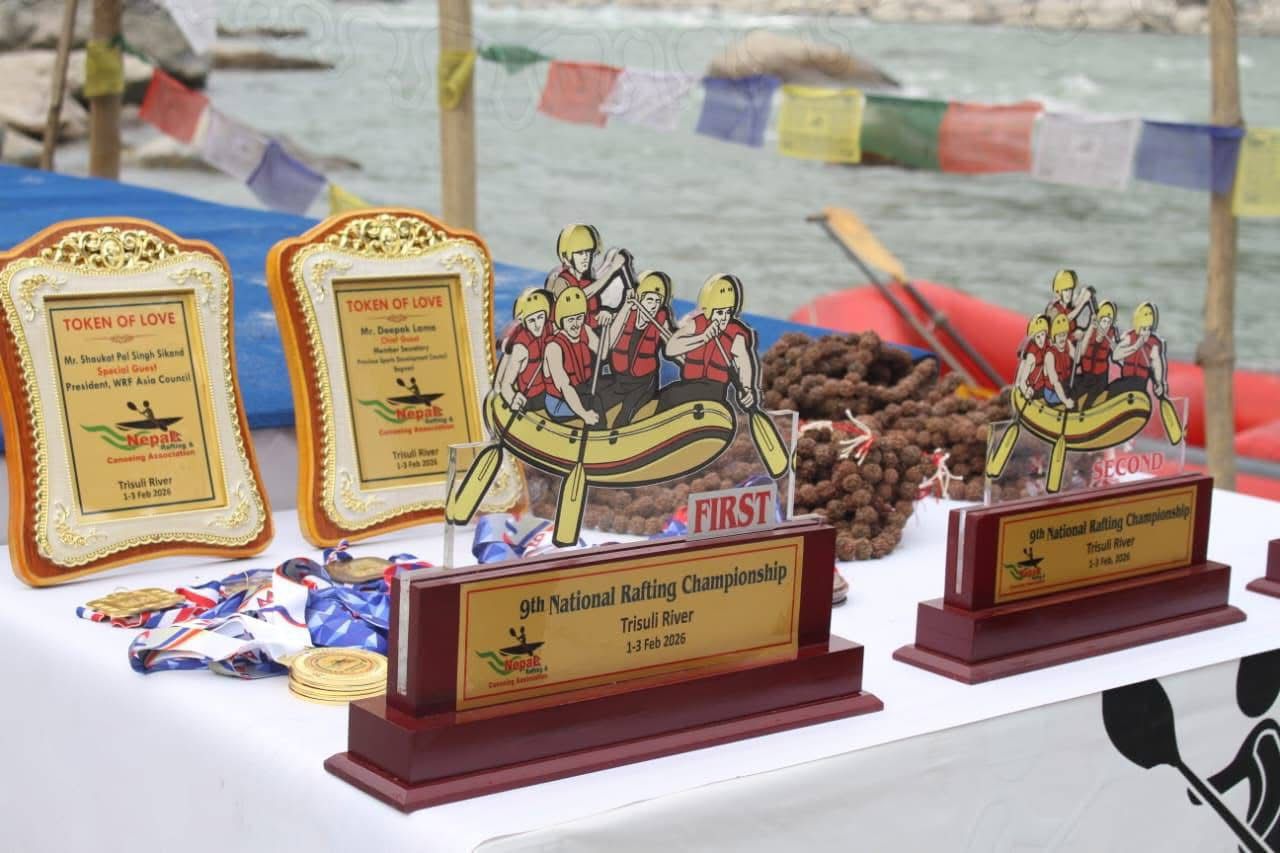 The winning team ''Nepal Raft & Kayak Club Fishing A'' delivered a complete performance scoring 300 points in slalom, 350 in RX and 322 in the downriver race, closing the event with a commanding total of 972 points. The Silver team ''Paddle Nepal B” pushed hard throughout the championship to take second place with 899 points, while ''Rafting Adventure Nepal'' completed the podium in third with 851.5 points. Strong performances from Bhotekoshi Adventure Club further underlined the depth and growing competitiveness of the national rafting scene.